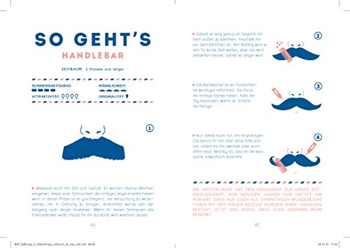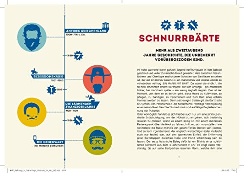 Vom amerikanischen Schnauzer bis zum Walrossbart, vom Musketier über den Dalí zum Rap Industry Standard oder gleich ganz Freestyle die Vielfalt der trendigen Bartkreationen kennt keine Grenzen. Doch egal für welche Barttracht ihr euch am Ende entscheidet, eins steht fest: echte Kerle haben Bärte. Aber es ist nicht immer leicht, den richtigen Barttyp für sich zu finden, ihn korrekt zu modellieren und perfekt zu pflegen. Schließlich ist der Schnurrbart noch viel mehr als die zweite Haut, eure Kleidung, Ausdruck von Individualität und Selbstbewusstsein. Doch jetzt gibt es ihn endlich, den locker und amüsant geschriebenen Leitfaden, mit dem sich Anfänger wie Fortgeschrittene in die glorreiche Geschichte der Schnurrbärte vertiefen können, unterschiedlichste Stile kennenlernen und dank der praxisnahen Step-by-step-Anleitungen unter der eigenen Nase endlich selbst die angesagtesten Cuts in die Tat umsetzen. Verwegen. Kernig. Cool.