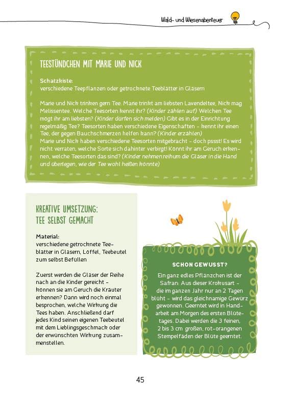 Durch ein Umweltschützer-Quiz können die Kinder ihr Wissen unter Beweis stellen und erhalten das Umweltprofi-Diplom. So wird spielerisch das Bewusstsein der Kinder für Umweltschutz und Nachhaltigkeit gestärkt. Die kreativen Praxisideen und wertvollen Tipps in diesem Buch helfen Ihnen dabei, auch Träger, Team und Eltern mit ins Boot zu holen und den Kita-Alltag nachhaltig und umweltfreundlich zu gestalten.