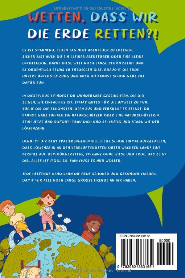 Das Kinderbuch „Umweltschutz für Kinder“ ist ein absolutes Must-Have für Kinder im Alter von 5-10 Jahren, um spielerisch Umweltbewusstsein zu fördern und wichtige Themen wie Nachhaltigkeit und Natur zu vermitteln. Das Buch besteht aus acht inspirierenden Geschichten, die den Alltag der Kinder widerspiegeln und ihnen zeigen, wie sie aktiv zum Umweltschutz beitragen können.
